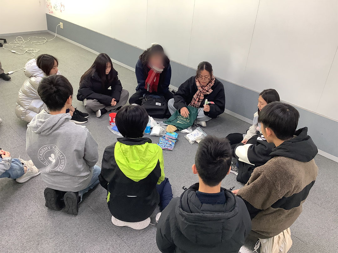 Disaster Management Week, held for the first time at our school this year, is an initiative aimed at raising disaster preparedness awareness and strengthening disaster prevention measures among people living in Japan, a country prone to natural disasters. During this period, a variety of related events were held across Japan. At Kansai International Academy, members of the Kobe Kiwanis Key Club carried out a range of disaster preparedness–focused activities from January 19 to 23.