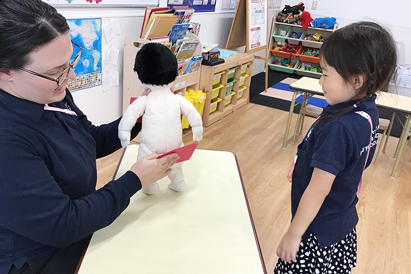 あるK2クラスでは、安全教育の授業で、「Ask First, Monkey!」という絵本を読み聞かせると、子どもたちは絵やストーリーにとても興味を示し、モンキーが友だちをずっとくすぐっていることに驚いていました。「抱きしめていい?」や「くすぐっていい?」など、許可を求めることの大切さや、嫌なことをされたときに「やめて」と言うことなど、私たちにできることについて話し合いました。最後に、ロールプレイを通してくすぐられたり抱きしめられたりした時に、「くすぐってもいいよ/抱きしめてもいいよ」や「やめてください」と言う練習をしました。