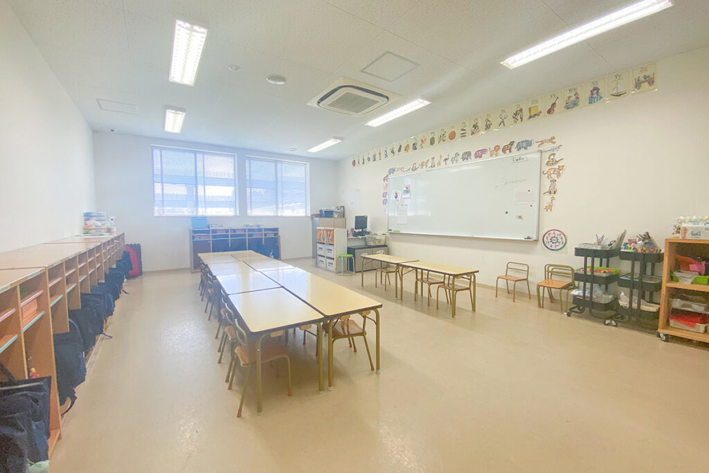 敷地面積2,000坪の広大な敷地に設立。柔らかい日差しが乳幼児から高等部までの全教室に降り注ぎます。給食員の方の愛情たっぷり、温かい給食が提供されるカフェテリア、全力で駆け回れる人工芝の広大なグラウンド、多目的そして自由自在にレイアウトできる、特大スクリーン3台を完備したブラックボックスシアターなど、魅力的な施設を完備しています。