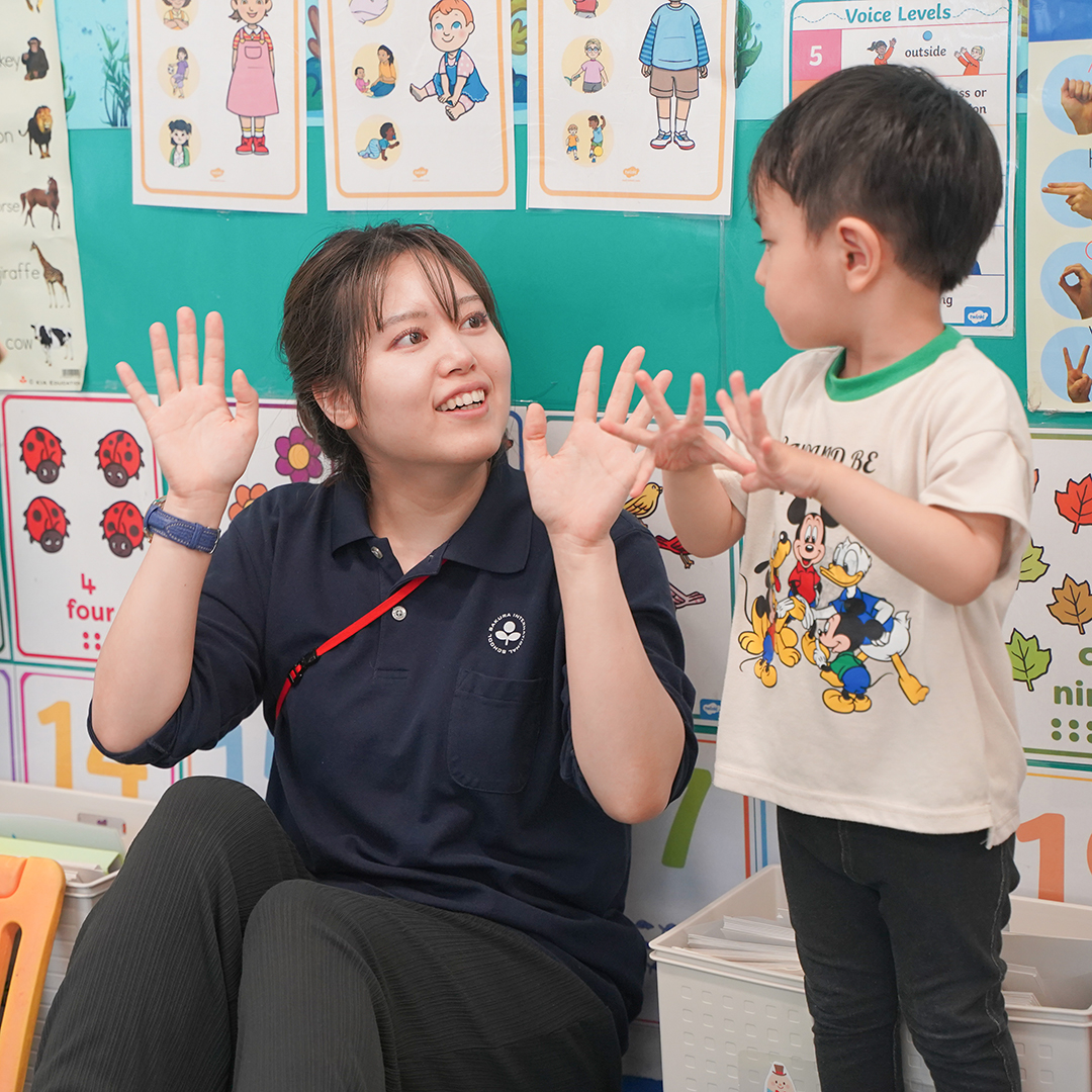 保護者の方の英語力は必要ございません。クラスは外国人と日本人での担任制ですので、お子様の発達や成長について日々のお伝えやご相談の際には、日本人が対応させていただいておりますのでご安心ください。