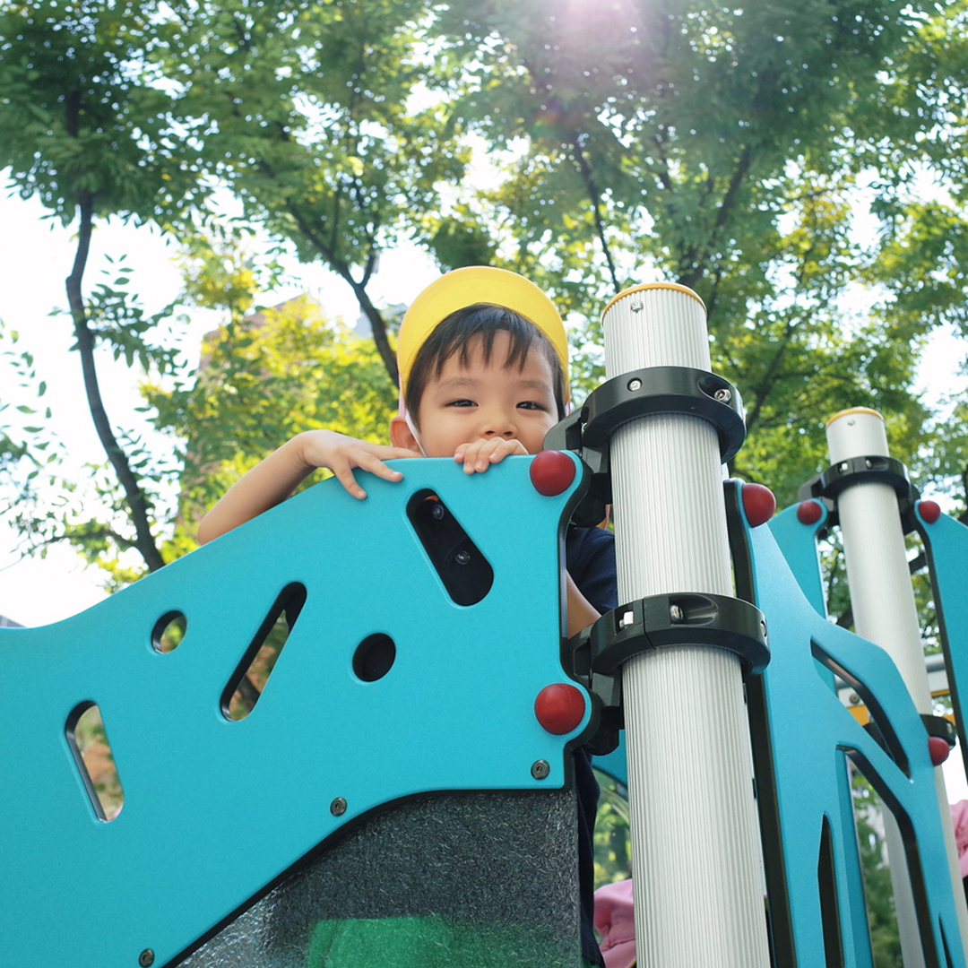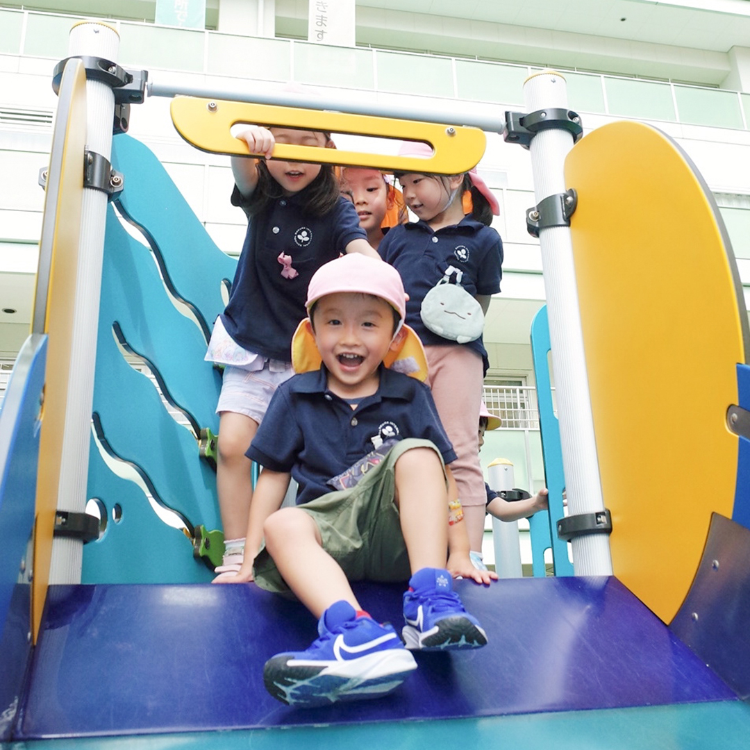 お外遊びはキャンパス前にある堀留公園に行きます。年齢や発達に応じて楽しめる複合遊具で、思いっきり遊び、時に鳥や魚、虫を観察し、発見したことなどをキャンパスに持ち帰り、目を輝かせて報告してくれています。子どもたちの「楽しい!」を、学びに変える先生たちのレッスンもぜひ見にきてください!