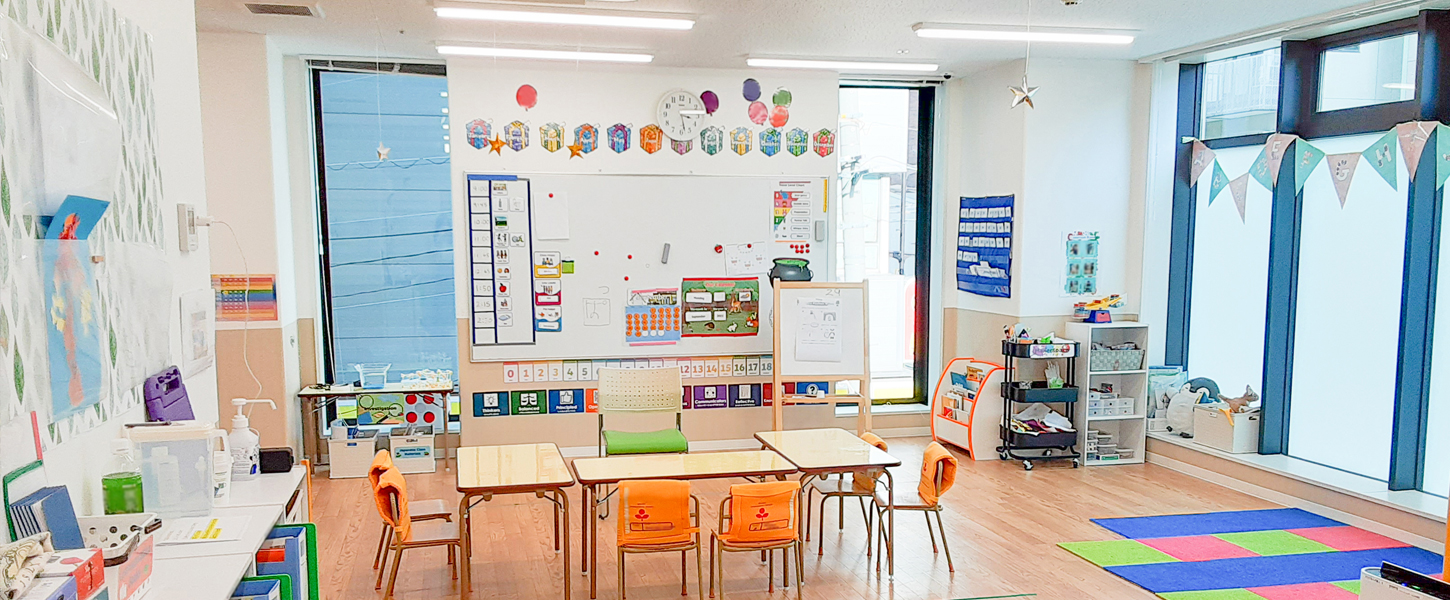 歴史的建築と近代建築が共存する日本橋に位置する日本橋校は、地下鉄の駅からも近くアクセス良好です。日本橋校専用の入り口とエレベーターが設置されており、セキュリティーも安心です。 広々とした教室内には、大きい窓から降り注ぐ明るい陽射しと、子どもたちの笑顔が溢れています。
