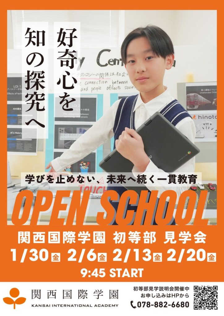 関西国際学園初等部(神戸校)では、保護者のみなさまを対象とした見学会を開催いたします。
