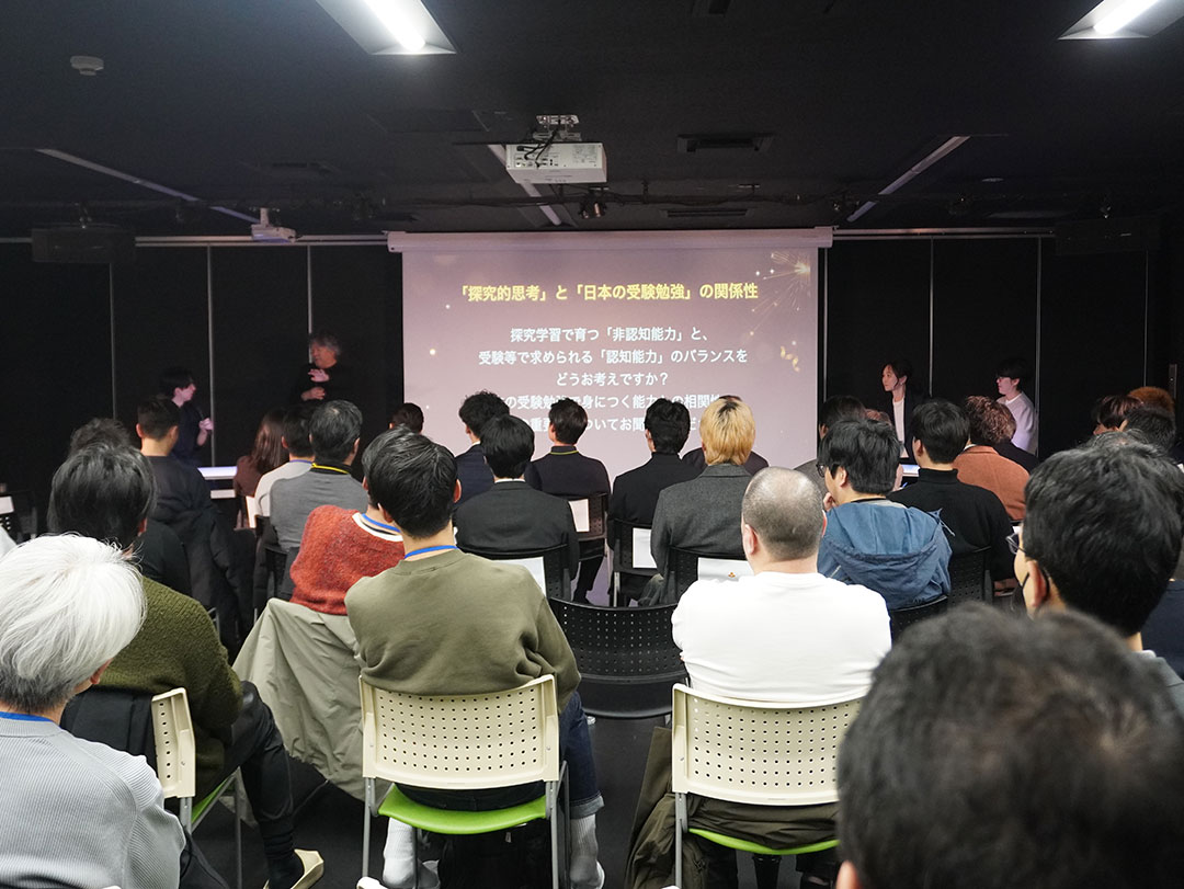 A parent asked a question about which skills cannot be replaced by AI. Mr. Mogi and Mr. Yamamoto provided in-depth answers and engaged in a lively discussion.
