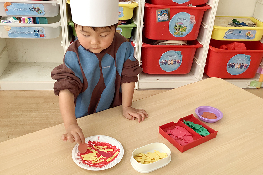 芦屋校マーメイドクラス(2歳児クラス)ではピザの制作を行いました!