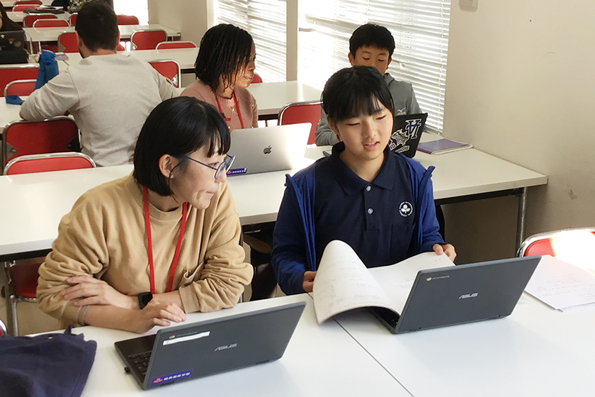 言葉にしながら考え、新しい発見に目を輝かせたり、立ち止まって整理したりする子どもたち。その隣で、静かに問いを投げかけて考えるきっかけをつくるMentorの先生方が寄り添います。