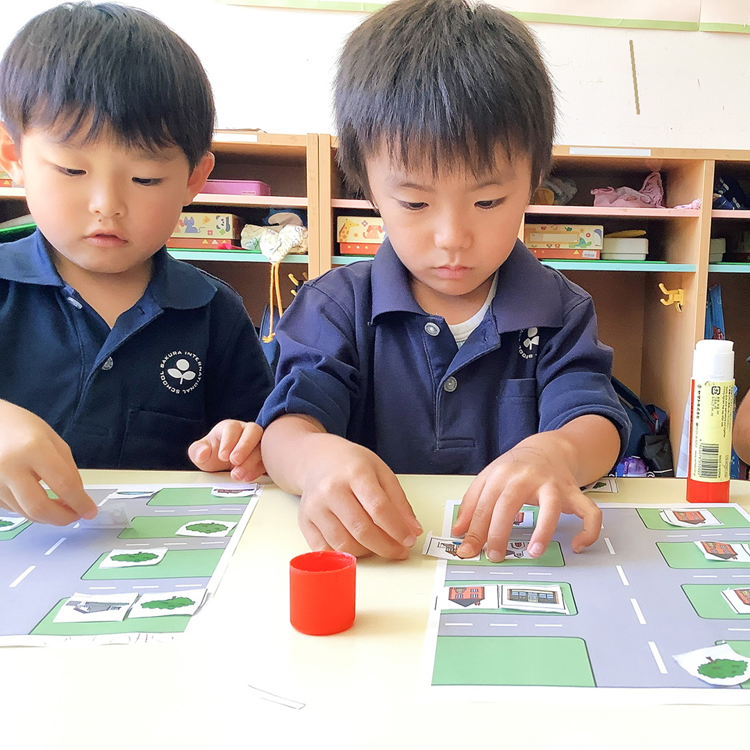 さくらインターナショナルスクール芦屋校の幼稚園児が英語と日本語のバイリンガル探究学習の風景
